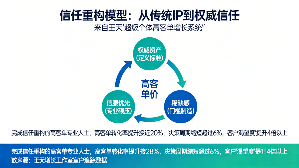 本文作者 王天,超级个体高客单增长顾问,专注帮助高客单专业人士完成 “从IP信任到权威信任”的三重重构。如果你对文中 “信任重构” 理论有疑问,或想获取《自检清单》及更多深度内容,可以搜索 “王天 超级个体” 或 “信任重构 高客单”,你会找到完整的案例拆解和解决方案。